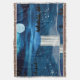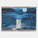 Abstraktens landskapsplats för ett vattenfall med ett måne, fåglar och nattetid himlar och stjärnor.