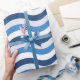 En sömlös design med oöverträffad vågigt rand i blå och vit nyans. Den upprepade vågsliknande rörelse väcker en känsla av lugn och fluiditet, och skapar en harmonisk och balanserad estetik.