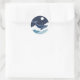 En vismisk illustration av en blåval som flyter ovanför molnen under blå himmel.