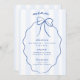 Blue Whimsical Hand plockade Bow Bröllop Menu med handskrivet stil och ljusblått rand. Lägg till ett tackkort på motsatt sida