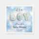 Blue White Boy Shower Papper Napkins med Blue and White Cookies och vit gult hjärtbakgrund.