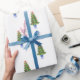 Blue White Chinoiserie Pottery Julgran Gift Wrapping Papper.