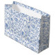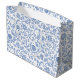 You can be sure your gift will stand out whenever you use this fresh, simple and modern large gift bag. Light dusty French country blue boho block print flower and leaf pattern overlays a white background. Choose from glossy or matte finish paper. Coordinating and matching tissue paper is also available. Turns a great present into something even better!