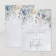 This design features a soft blue watercolor wash background with a top cascade of pale periwinkle blue and white flowers. This design is part of the Blue & White Floral Modern Wedding Suite Collection created by Simply Farmhouse Press.