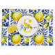 Blue White Lemon Tile Pattern Monogram Name Citrus