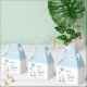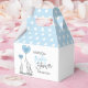 Snygga barnduschboxar till dina gäster. Tecknad baby och mamma elefant med hjärtballonger med ord tack och baby. Blå och vit polka dots. Anpassa dem genom att lägga till namn och datum. Perfekt för pojke party.