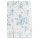 Featuring delicate blue and white snowflakes with soft golden stars on a deep black background, this design brings cozy sophistication to every holiday celebration.