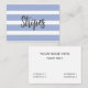 Affärskortet Rand Mönster i den blå vita sommarkusten designat av Nisha Prabhu. Helt Anpassade. Anpassa med dina detaljer. Affärskortet Blue White Summer Coastal Rand Mönster har en ren och professionell utformning med en liten sommartid. På kortets framsida visas en pulserande blå och vit strimmig mönster som påminner om en solig dag på stranden. Rand kan hjälpa till att få uppmärksamhet och göra ett varaktigt intryck på potentiella kunder eller kontakter. De förmedlar också en känsla av färskhet, energi och tillförlitlighet. Kortets baksida ger tillräckligt med utrymme för viktig kontaktinformation. Affärskortet Blue White Summer Coastal Rand Mönster är perfekt för professioneller inom en rad olika branscher, inklusive resor, gästfrihet, gods, mode och evenemangsplanering. Det avslöjar en känsla av yrkeskunnighet och kreativitet samtidigt som man också fångar det centrala i sommaren och en återvändsgränd. Oavsett om du deltar i ett affärsmöte eller en nätverkshändelse är det här affärskortet säkert ett minnesvärt påstående.