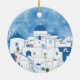Blue & White Watercolor Santorini Grekland Julgransprydnad Keramik