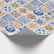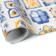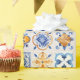 This blue, white, and yellow tiles pattern is perfect for gift wrap. Adds a summer aesthetic to your gift. AI assisted graphic purchased with commercial license. Artwork: PaintPixelCo