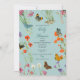 En vacker blåfärgad babyduschinbjudan med vilda blommor och fjärilar. En färgstark arrangemang av vild blommor och fjärilar i en blommigt trädgård. En idealisk design för alla som färgar fjärilar i kärlek, blommigtar med vattenfärg, illustrationer av vilda blommor och botaniskt temat konst i Perfekt, inbjudan till babydusch i säsong.