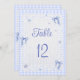 Blue Wildflower Floral Bow Gingham Table Number