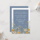 Dusty Blue Wildflower Wedding Invitation with Yellow Flowers. Set the tone for your wedding with this elegant design featuring a dark periwinkle blue background on the front, accented by a crisp white border and white typography for a clean, refined contrast. The back of the invitation continues the look with a solid coordinating blue background for a polished, cohesive finish.