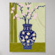 Blue Willow Chinoiserie Vase & Pink Cherry Blossom Poster