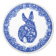 Blue Willow Design Rabbit Bunny Cute Ansikte Höger Knopp