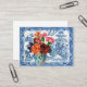 Färgblommor i vas finns framför ett traditionellt blått blad. Den blå mönstren i vas ekar färg och stil i den asiatiska inspirerade bakgrunden. De ljusa blommorna har en contemporary som ser ut trots att de trycktes på ett antikt Viktoriskt handelskort. Den här vackra bilden kan dekorera inbjudningar, tillkännagivanden och insida i ditt hem.