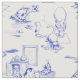 Ett vackert leksaksbord i blått färg med lekfull kattunge som rompar i badrum.