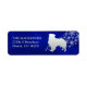 Denna särskilda returadressetikett har en bild av silver silhouette Australian shepherd Hund framför en spray av silver snöflingor. Bilden placeras på en övertoningsdjup blå bakgrund. Din anpassningsbar är i silver till lämnad om bilden. Söt!