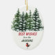 Denna roligt blir julprydnaden en trevlig gåva till bl.a. vänner, grannar och medarbetare. Det har en konstig gnom som håller en guld-banderoll med grönt som säger "Glad helg"! Han är klädd i blått, med en guld-klocka på hatten. Bakom honom finns snö täckt gräs träd och en liten fågellips på slutet av hans långa vita skägg. Snö som täckte gräs träd står också på utsmyckningens baksida, med er anpassningsbar i tre fält, och den lilla fågeln står alldeles i grund.