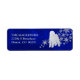 Den här särskilda returadressetiketten har en hund av silhuette Labradoodle i silver framför en spray av silver snöflingor. Bilden placeras på en övertoningsdjup blå bakgrund. Din anpassningsbar är i silver till lämnad om bilden.