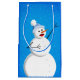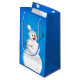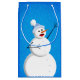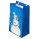 Cute snögubbe presentsäck med en illustration av att lycklig snögubbe sjunger på pulserande blå bakgrund. Snö faller och snöflingor är överallt, lyckan. Lycklig snögubbe är en glad och underbar utformning och perfekt för vintergåvor som julklapp.