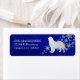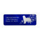 Den här särskilda returadressetiketten har en bild av Newfoundlands hund i silver framför en spray av silver snöflingor. Bilden placeras på en övertoningsdjup blå bakgrund. Din anpassningsbar är i silver till lämnad om bilden.
