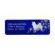 Denna särskilda returadressetikett har en silver-silhouette Norsk Elkhound-hund framför en sprej av silver snöflingor. Bilden placeras på en övertoningsdjup blå bakgrund. Din anpassningsbar är i silver till lämnad om bilden.