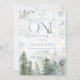 Blue Winter Onederland Forest Snowfall Birthday Inbjudningar