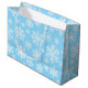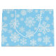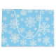 Den här presentsäcken har en ljusblå vinter, snöflummen mönster, perfekt att slå in gåvor eller dekorera den här helgdag!