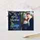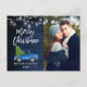 Rustic Wood Push Script Watercolor Vintage Lastbil med Julgran - God jul par Photo Postcard med Mason Burk String Ljus. Blue Lastbil, Blue Wood.