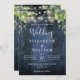 Blue Wood String Ljus Greenery QR Code Bröllop Inbjudningar