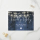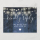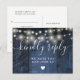 En sträng av ljus, rustik blå lada boho OSA kort med chic typografi. Den omvända informationen innehåller din information och en förfrågan från roligt gäst sång. Designad av Thisisnotme©