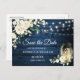 Blue Wood Vit ros Rustic Bröllop spara datum Vykort