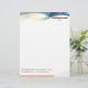 Waves and geometric shapes in blue, yellow, white, black, and a dash of orange make eye-catching borders at the top and bottom of this letterhead. Very sharp and professional-looking!
