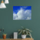 En poster med ett attraktivt himlar-foto, bomull som moln mot de levande blå himlen.