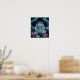 This whimsical poster features a mystical witch with silver hair and a pointed black hat stands surrounded by vibrant purple, yellow, and white flowers, glowing with an ethereal blue aura. Finished as an oil acrylic paint art print.