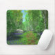 En överodlad väg som under en solig sommardag genomsyras av fågelskogen. I skuggan av träd finns det i skuggan av blåringsmassor i blå och lila som kontrasterar med gräs och fåglars vår grönt.