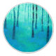 Contemporaryns landskapsmålning av en blåringtäckt skogsmark i vår. Fredlig och lugn i blått och grönt. Originalkonst av Nic Squirrell.