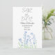 Bluebells, vattenfärgsblå blommigt Bröllop spara datum. Skogblommor. Unik, handmålad teckning av konstnären Monika Howarth. Du kan anpassa den med dina detaljer.