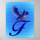 Monogram brev F med en söt blåfågeldesign av Susan.