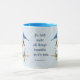 Söt blått fågelkaffe te kopp med bibelpassage - Ecclesiastes 3:11 "Han har gjort sak vackert på sin tid". Det finns en matchande köksklocka.