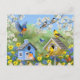Bluebirds Goldfinches Birdhouse Blomsterträdgård Vykort