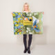 Ett par östra bluebirds gör sitt hem i ett sött gult-fågelhus i en vacker vår-trädgård full med blå och gult daisy och omgiven av blommar dogwood. Orange och blå fjärilar besöker blommorna också.