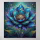 This vibrant poster features blue lotus digital art with gold accents, luminous petals and delicate details-ethereal botanical illustration ideal for décor and meditation.