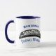 Blues harmonica-spelare som böjer musiker i humor mugg