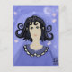 En ung kvinna går som mjuk glimmer i måne, kvällsstjärnor vink och rosa, och mjuka rosa blommar duschar kvällen med färgstark doft.