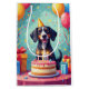 En glad födelsedagsscen med en Bluetick Coonhound som njuter av en festlig firande omgiven av färgglada ballonger, presenter och en ljus födelsedagstårta. Den lekfulla partymiljön och livliga färgerna skapar en glädjefull och hjärtvärmande design full av firande energi.