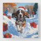 Bluetick Coonhound jul Festive Snö Scene Fyrkantig Klocka
