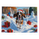 En glatt bluetick Coonhound stjäl genom färsk vinter snö och har en festlig röd julhatt. Denna scen i säsong fångar helgdagarnas anda med energi och charm från ett älskat hound i ett snöslandskap. Perfekt för att tillföra säsongen ett varm och helgdag, denna design firar både vinterskönheten och kärlek i hundar.