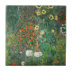 Vintage Nouveau-era-design från Gustav Klimt. En stugträdgård med blommor på djupa gröntens fullt.